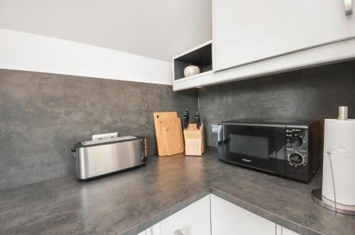 这家公寓配有1间卧室、起居室、带冰箱和咖啡机的设施齐全的厨房以及1间带淋浴设施和吹风机的浴室。这家公寓也拥有休息区和1间浴室。